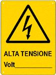 cartello "ALTA TENSIONE VOLT___" in alluminio spessore 0,7 mm misura 333 X 500 distanza di lettura mt. 10cod. CS1746X |
