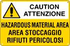 cartello "ATTENZIONE AREA STOCCAGGIO RIFIUTI PERICOLOSI (2 Lingue)" in alluminio spessore 0,7 mm misura 500 X 333cod. CS2756 |