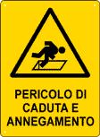 cartello "PERICOLO DI CADUTA E ANNEGAMENTO" in alluminio spessore 0,7 mm misura 333 X 500 distanza di lettura mt. 10cod. CS17139X |